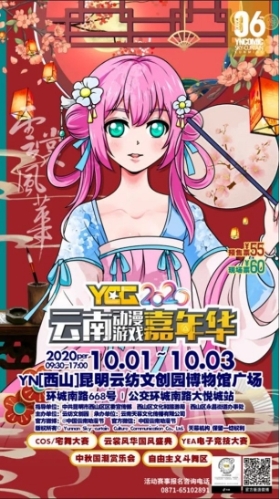 10月1日至10月3日,在昆明云纺文创园博物馆广场举办“第六届云南动漫游戏嘉年华”。届时将有COS宅舞大赛、云裳风华国风盛典、YEA电子竞技大赛、中秋国潮赏乐会、自由主义斗舞区等多种活动。