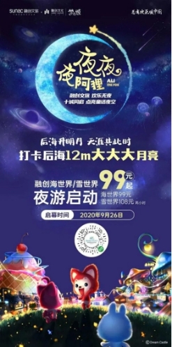 活动于9月26日启幕,融创海世界、雪世界夜游特惠,海世界夜游99元,雪世界夜游108元(两小时)。融创文旅城同时开展浪漫双人游、一家三口总动员等活动。