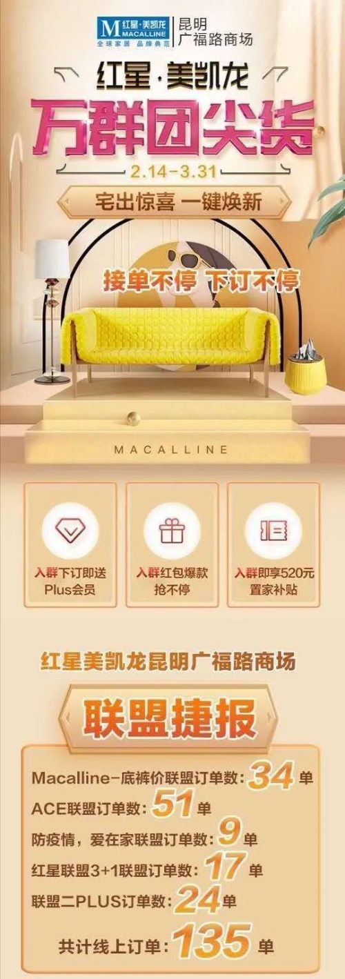 而在爱琴海商圈,家居连锁名店红星美凯龙也正在举全员之力抗疫复业。每天,严格的员工检疫入岗,APP定制版疫期优惠线上促销,新品路演网络直播促成了新业态,发票网上领用邮政速递,生机复现。