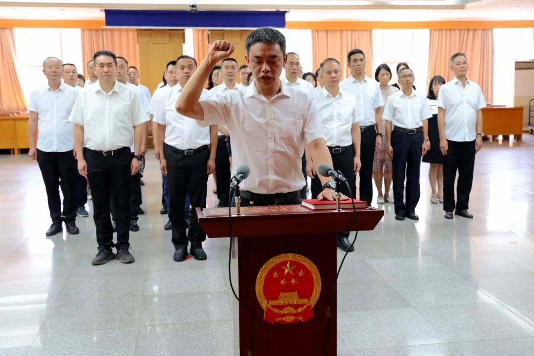 最后,由陈勤华监誓,周俊进行了宪法宣誓,区人大常委会组成人员、全体列席会议人员参加了宪法宣誓。