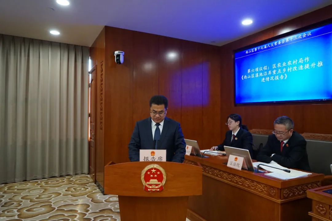 会议听取和审议了《西山区人民政府办理区十七届人大二次会议议案、代表建议和2023年惠民实事的情况报告》《西山区人民政府关于2022年度财政预算执行和其他财政收支审计查出问题整改情况的报告》《西山区“八五”普法规划推进情况报告》《西山区滇池沿岸重点乡村改造提升推进情况报告》。