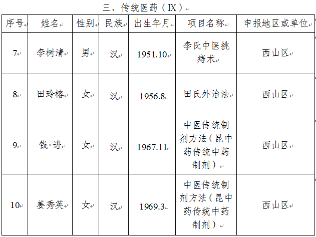 附件:西山区申报昆明市第六批市级非物质文化遗产代表性传承人拟推荐人选名单