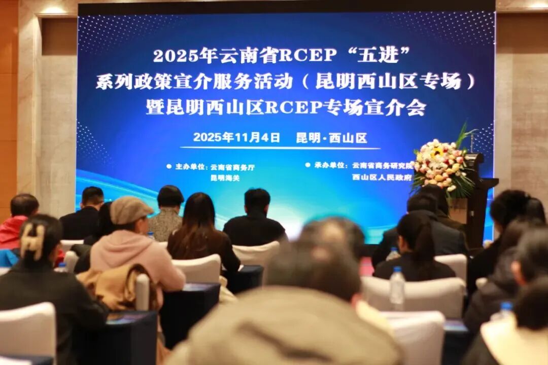 为深入推进《云南省加快对接RCEP行动计划》,助力辖区外贸企业精准掌握RCEP规则、充分释放协定红利,2025年11月4日,2025年云南省RCEP“五进”系列政策宣介服务活动(昆明西山区专场)暨西山区外贸企业RCEP专场宣介会,在昆明市西山区南亚风情第壹城温德姆至尊豪廷大酒店成功举办。