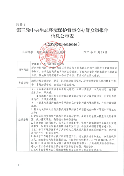 第三轮中央生态环境保护督察交办群众举报件信息公示表(X3YN202406020026)